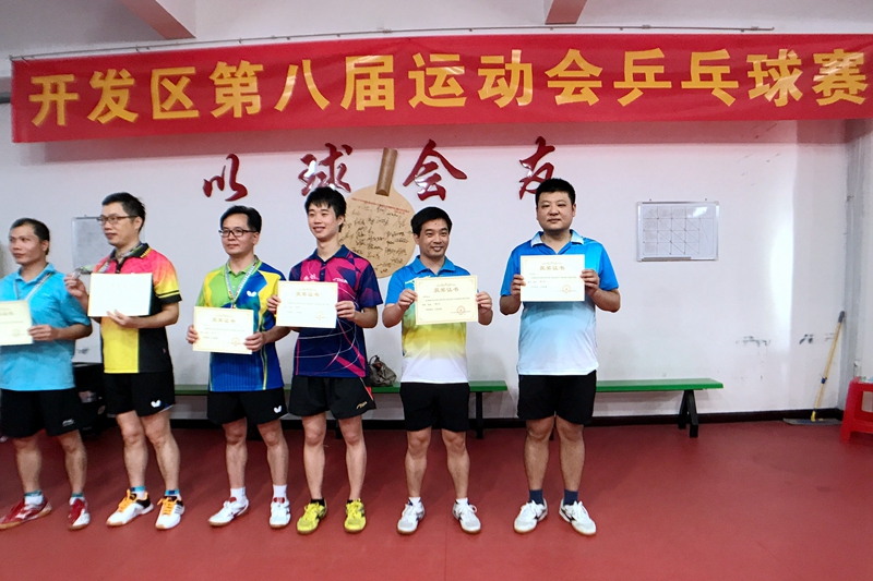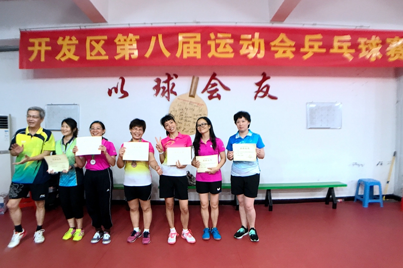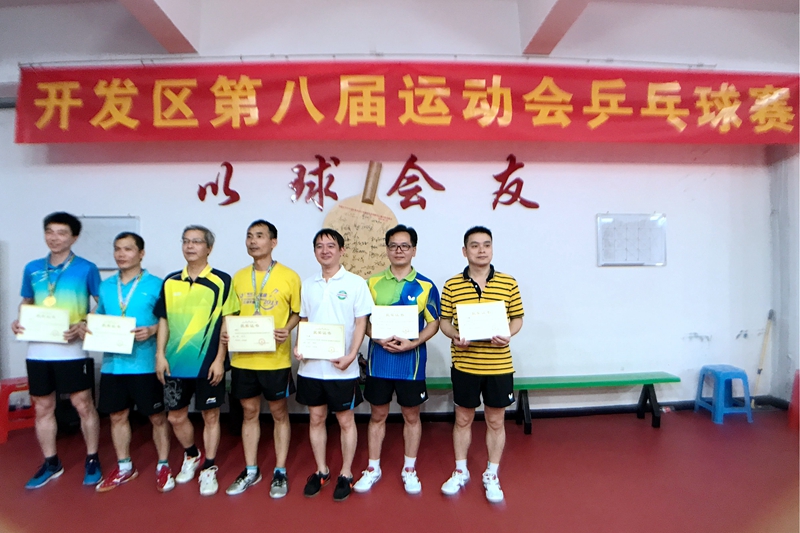 中山火炬開發(fā)區(qū)第八屆全運會乒乓球賽于6月11日結束,國家健康基地乒乓球隊運動員經(jīng)過奮力拼搏,榮獲男子單打金牌,女子團隊銀牌,女子單打銅牌,女子單打第四名,男子團隊第五名,領導組女子單打第四名、第五名,共獲得獎牌7枚,獲得獎牌數(shù)居全區(qū)第一。