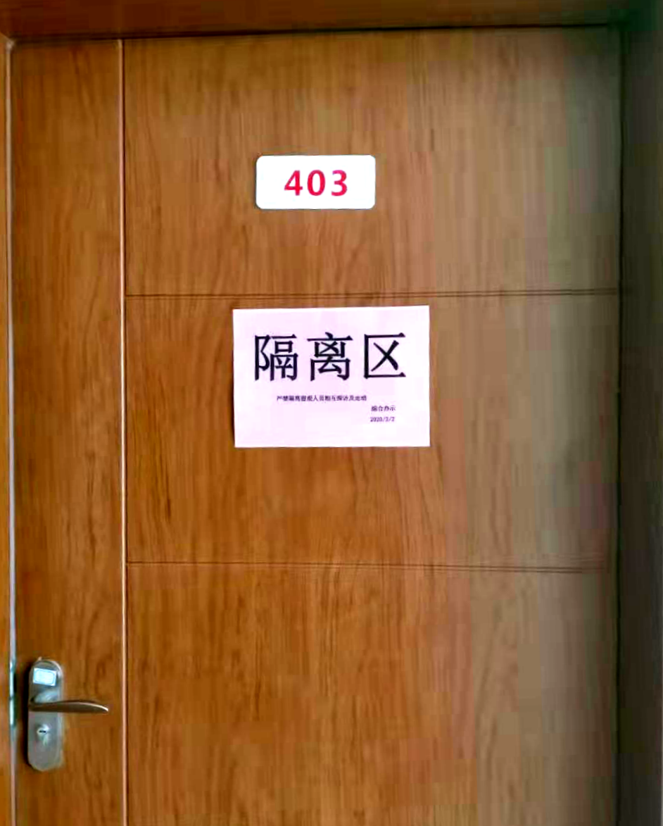 目前,可可康公司實行封密式管理,進入廠區(qū)人員需有通行證,一人一證。 宿舍設置了整層樓作為隔離區(qū),隔離區(qū)有20間,隔離區(qū)配備齊全了生活所需的物品,并有專人管理及送餐等。