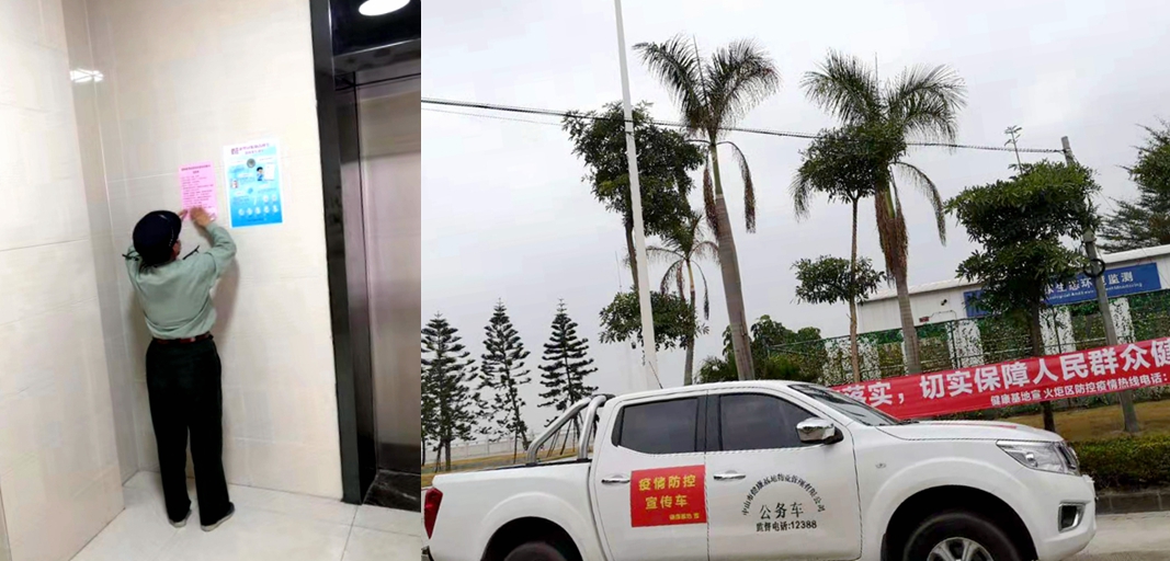 通過公司官網(wǎng)、微信公眾號等網(wǎng)絡(luò)宣傳平臺以及企業(yè)主群、黨建群、工會群、團委群、宿舍住戶群等轉(zhuǎn)發(fā)各類宣傳信息,如:《火炬區(qū)新型冠狀病毒感染的肺炎疫情發(fā)生地來粵人員健康監(jiān)測和管理指引》、《致火炬開發(fā)區(qū)企業(yè)的一封信》等宣傳信息。到園區(qū)張貼1500份防疫知識宣傳海報,自制300張通知、懸掛橫幅58條張貼在園區(qū)所有的集體宿舍,在德仲廣場LED屏和園區(qū)黨群中心LED屏播放滾動視頻,利用1臺移動音響宣傳車和5臺固定音響的方式在園區(qū)廣播。