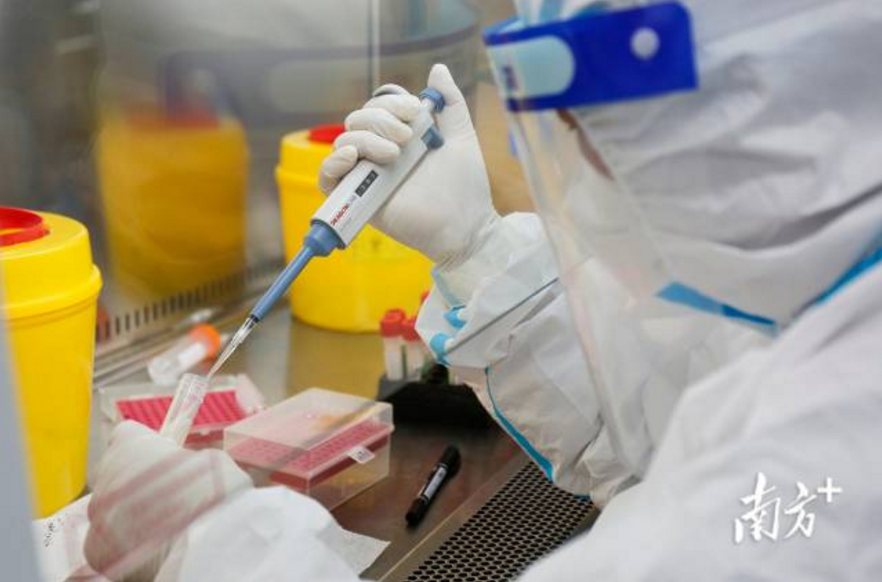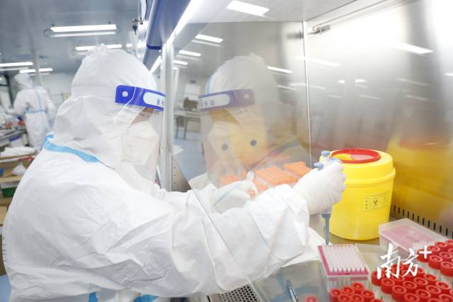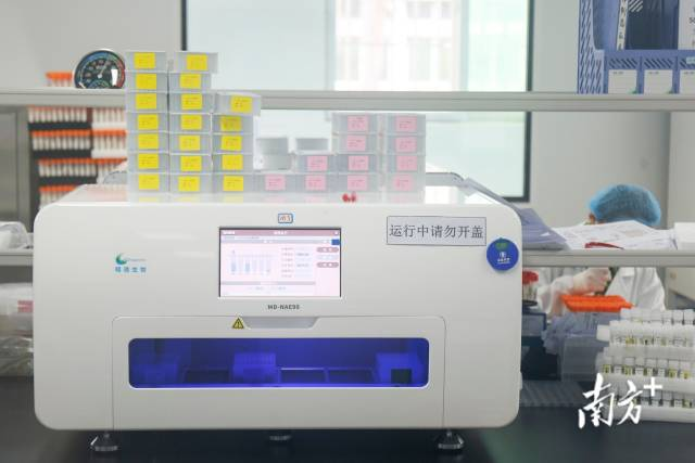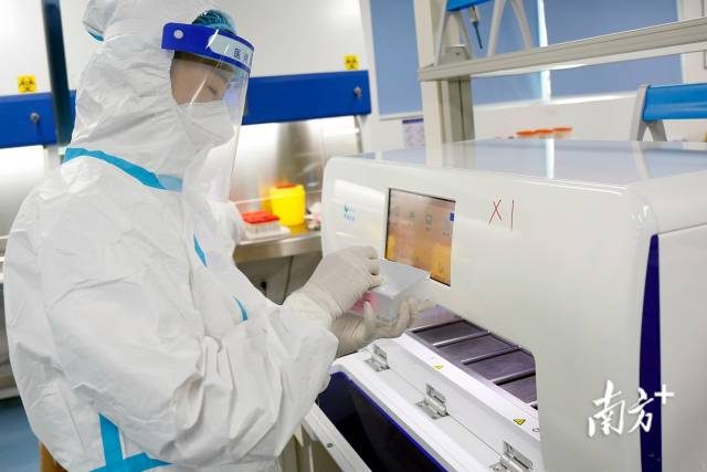 從1號(hào)盒子到6號(hào)盒子,大約需要75分鐘。為了進(jìn)一步辨別“純化RNA”是否屬于新冠肺炎病毒,樣本還要被人工轉(zhuǎn)移至PCR儀器進(jìn)行檢測(cè),最終得到檢測(cè)報(bào)告。這個(gè)過程下來,整個(gè)檢測(cè)最快需要3小時(shí)。連日來,中山市核酸城市檢測(cè)基地負(fù)責(zé)人齊增恒與近500名同事,通宵達(dá)旦地檢測(cè)核酸樣本。