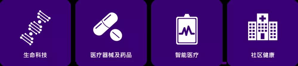 醫(yī)療器械及藥品 — 高性能材料、第二等級醫(yī)療器材、第三等級醫(yī)療器材、生物制劑、其他智能設備、機械人與新興技術、診斷。