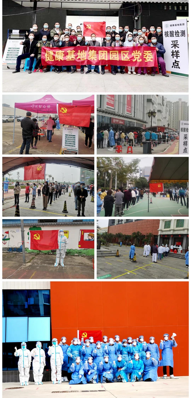 疫情就是命令,防控就是責(zé)任。健康基地集團(tuán)園區(qū)黨委按照上級(jí)指示,迅速部署,在各檢測(cè)點(diǎn)設(shè)立臨時(shí)黨支部,并把此次全員核酸檢測(cè)工作作為錘煉隊(duì)伍的“練兵場(chǎng)”“磨刀石”。黨員同志和廣大員工打頭陣,爭(zhēng)先鋒,迅速做好篩查的人員、物資、場(chǎng)地部署,用實(shí)際行動(dòng)詮釋“一個(gè)支部一個(gè)堡壘,一名黨員一面旗幟”的風(fēng)采,堅(jiān)決筑牢疫情防控嚴(yán)密防線,讓黨旗在疫情防控一線高高飄揚(yáng)。