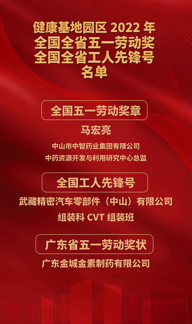 4月28日,在中華全國總工會召開的2022年全國五一勞動獎和全國工人先鋒號獲得者表彰大會上,健康基地園區(qū)1人被授予“全國五一勞動獎章”、1個單位被授予“全國工人先鋒號”。此外,在2022年廣東省慶祝“五一”國際勞動節(jié)暨勞模表彰大會上,1個單位被授予“廣東省五一勞動獎狀”。