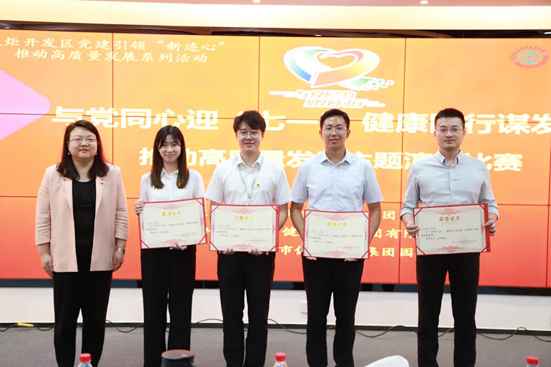 為深入貫徹黨的二十大精神,以實際行動迎接建黨102周年,激勵集團(tuán)全體黨員干部職工進(jìn)一步統(tǒng)一思想、凝心聚力、對標(biāo)趕超,奮力開創(chuàng)集團(tuán)高質(zhì)量發(fā)展新局面,健康基地集團(tuán)園區(qū)黨委于6月27日舉辦“與黨同心迎‘七一’ 健康同行謀發(fā)展”推動高質(zhì)量發(fā)展主題演講比賽;鹁骈_發(fā)區(qū)組織人事辦副主任王少凱、火炬開發(fā)區(qū)黨群服務(wù)中心主任李慧、中山港街道團(tuán)工委副書記邱學(xué)松、健康基地集團(tuán)園區(qū)黨委書記、總經(jīng)理萬鶴群等集團(tuán)領(lǐng)導(dǎo)班子參加此次活動。