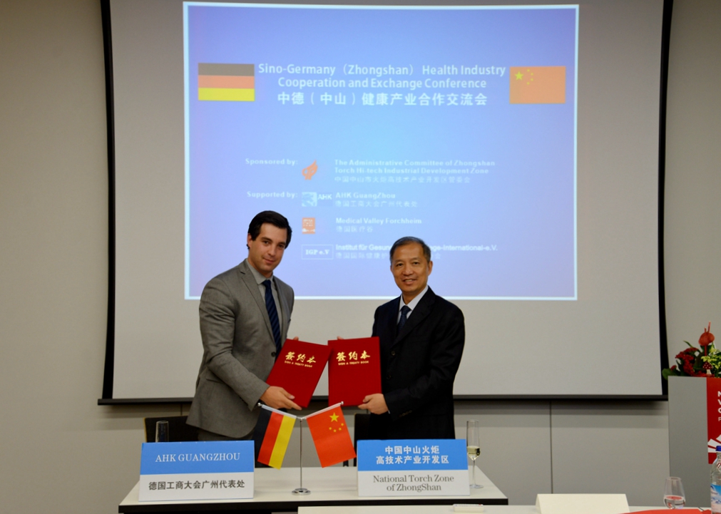 最后,侯奕斌常委與德國工商大會大中華區(qū)協(xié)調(diào)總監(jiān)Urban簽署了合作備忘錄,中山火炬開發(fā)區(qū)將與德國工商大會廣州代表處合作開展德國健康產(chǎn)業(yè)調(diào)研、線上線下推介、項目對接等合作。德國工商大會廣州代表處將協(xié)調(diào)合適的德國生物醫(yī)藥企業(yè)與中山對接,組織相關機構到中山考察,協(xié)助中山市在德國及歐洲進行推介、宣傳和項目洽談,并協(xié)助中山市與德國使領館、商協(xié)會、咨詢服務機構進行聯(lián)系,拓寬中山對德合作渠道。同時,雙方將建立協(xié)調(diào)聯(lián)絡機制,加強日常溝通和聯(lián)系,為中德(中山)生物醫(yī)藥產(chǎn)業(yè)園的發(fā)展輸送高質(zhì)量項目,并促成包括科研、資本、品牌推廣等方面的合作。