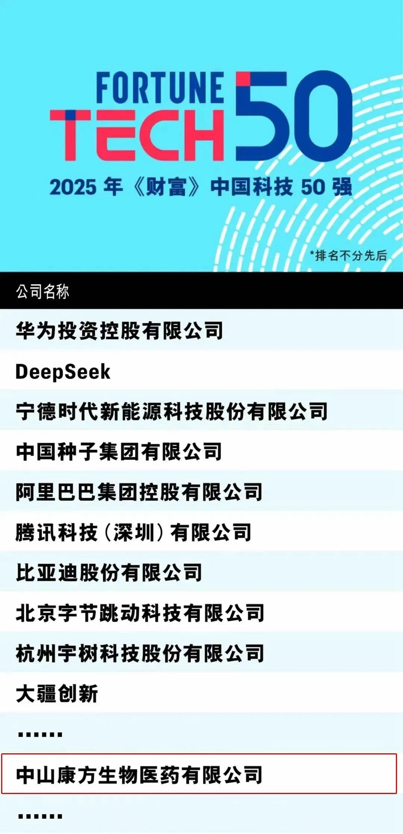 8月21日,國際權威商業(yè)雜志《財富》(Fortune)正式公布“2025年《財富》中國科技50強”榜單結果,健康基地園區(qū)企業(yè)康方生物憑借卓越的創(chuàng)新能力與突破性研發(fā)成果,成功入選 “中國科技50強”榜單。