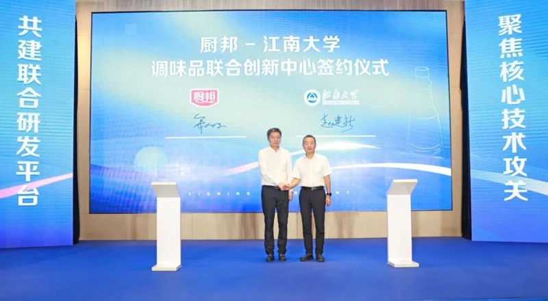 9月4日,健康基地園區(qū)企業(yè)美味鮮旗下品牌廚邦與江南大學(xué)正式簽署協(xié)議,共同成立“廚邦—江南大學(xué)調(diào)味品聯(lián)合創(chuàng)新中心”。中國工程院院士、江南大學(xué)校長陳衛(wèi)攜項目團隊,中炬高新董事長黎汝雄及廚邦相關(guān)管理和研發(fā)人員共同出席簽約儀式,中山市科技局及火炬高新區(qū)領(lǐng)導(dǎo)參與見證。
