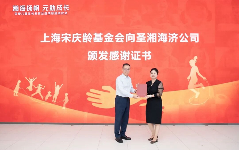 啟動(dòng)儀式上,上海宋慶齡基金會(huì)向圣湘海濟(jì)頒發(fā)感謝證書,以表彰其對(duì)公益事業(yè)的大力支持。