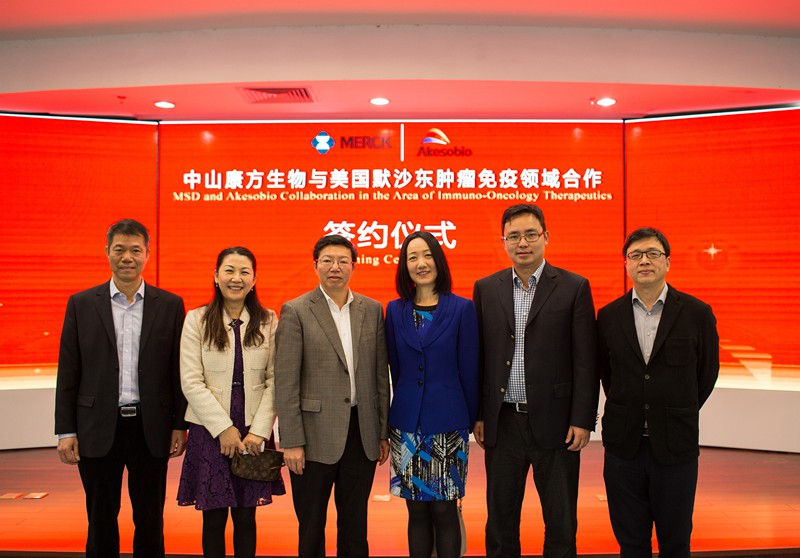 3月2日,中山康方生物有限公司董事長夏瑜博士和從美國總部專程前來的默沙東全球高級副總裁Xu Yuan博士就雙方在腫瘤免疫領域開展合作進行簽約儀式,市委常委、常務副市長謝中凡、火炬開發(fā)區(qū)管委會主任招鴻、中山市科技局局長尹明、火炬開發(fā)區(qū)總經(jīng)濟師梁兆華、國家健康基地副總經(jīng)理余從洪等共同見證簽約儀式。