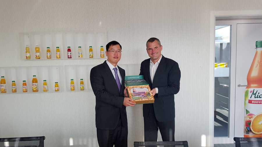 瑞士當(dāng)?shù)貢r(shí)間10月20日上午,由中山市食品藥品監(jiān)督管理局副局長(zhǎng)曾德強(qiáng)帶隊(duì),國(guó)家健康基地副總經(jīng)理林霞等中山經(jīng)貿(mào)代表團(tuán)一行參觀考察位于瑞士Rothrist的Rivella公司。