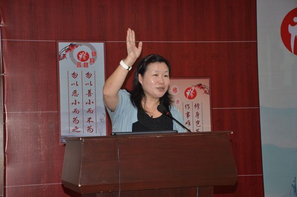 葉老師向女員工提出了美滿幸福六字訣:成功、健康、自在,并從構(gòu)建孩子幸福感的八種方法、了解并發(fā)揮孩子的優(yōu)勢方法、促進孩子幸福的美德育成方法三方面介紹幸福孩子的培育方法。