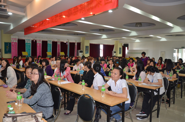 4月18日, “幸福女工”修身學(xué)堂走進健康基地,美捷時、星昊、中智藥業(yè)等園區(qū)企業(yè)200多名女工在課堂上分享了生活中的幸福和困擾。廣東省社區(qū)教育專業(yè)委員會副秘書長、百分媽媽研究所副主任葉文芳為女工解答了困惑,并介紹如何創(chuàng)造幸;橐、如何培養(yǎng)幸福孩子。