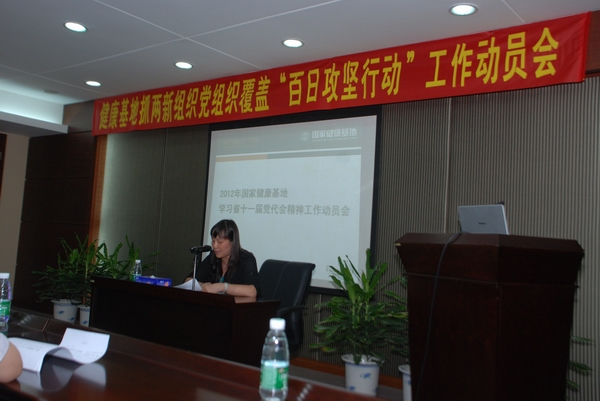 本網(wǎng)訊  為擴(kuò)大黨在兩新組織中的組織和覆蓋工作,5月18日,國(guó)家健康基地黨總支集中全體黨員專門召開(kāi)兩新組織黨組織覆蓋“百日攻堅(jiān)行動(dòng)”工作動(dòng)員大會(huì)。大會(huì)就“攻堅(jiān)行動(dòng)”的工作任務(wù)進(jìn)行了全面布署,并就相關(guān)的工作業(yè)務(wù)知識(shí)進(jìn)行了培訓(xùn)。大會(huì)還同時(shí)成立了國(guó)家健康基地抓兩新組織黨組織覆蓋“百日攻堅(jiān)行動(dòng)”領(lǐng)導(dǎo)小組,全體黨員和群眾一起就省市區(qū)黨代會(huì)有關(guān)精神進(jìn)行了傳達(dá)和認(rèn)真學(xué)習(xí)。