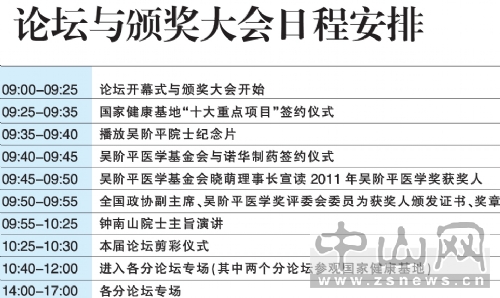 第六屆健康與發(fā)展中山論壇、2011年吳階平醫(yī)學獎頒獎大會于今日在中山火炬高技術(shù)產(chǎn)業(yè)開發(fā)區(qū)國際會議中心舉辦,為期一天。